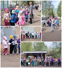 Опубликовано: 05.05.2025Сегодня в нашем дошкольном учреждении прошла акция "Бессмертный полк". Воспитанники сада совместно с родителями подготовили портреты своих родных - участников ВОВ, изготовили транспаранты. Дети читали стихи, пели песни.