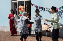В программу праздника были включены индивидуальные выступления детей и разных героев. Ребята соревновались в силе, ловкости и выносливости, поиграли в игры соревновательного характера: «Бой мешками», «Конные скачки», «Бег в мешках», «Кто быстрей донесёт воду в пиалах», «Перетяни канат». Особенно весело прошел бой мешками.