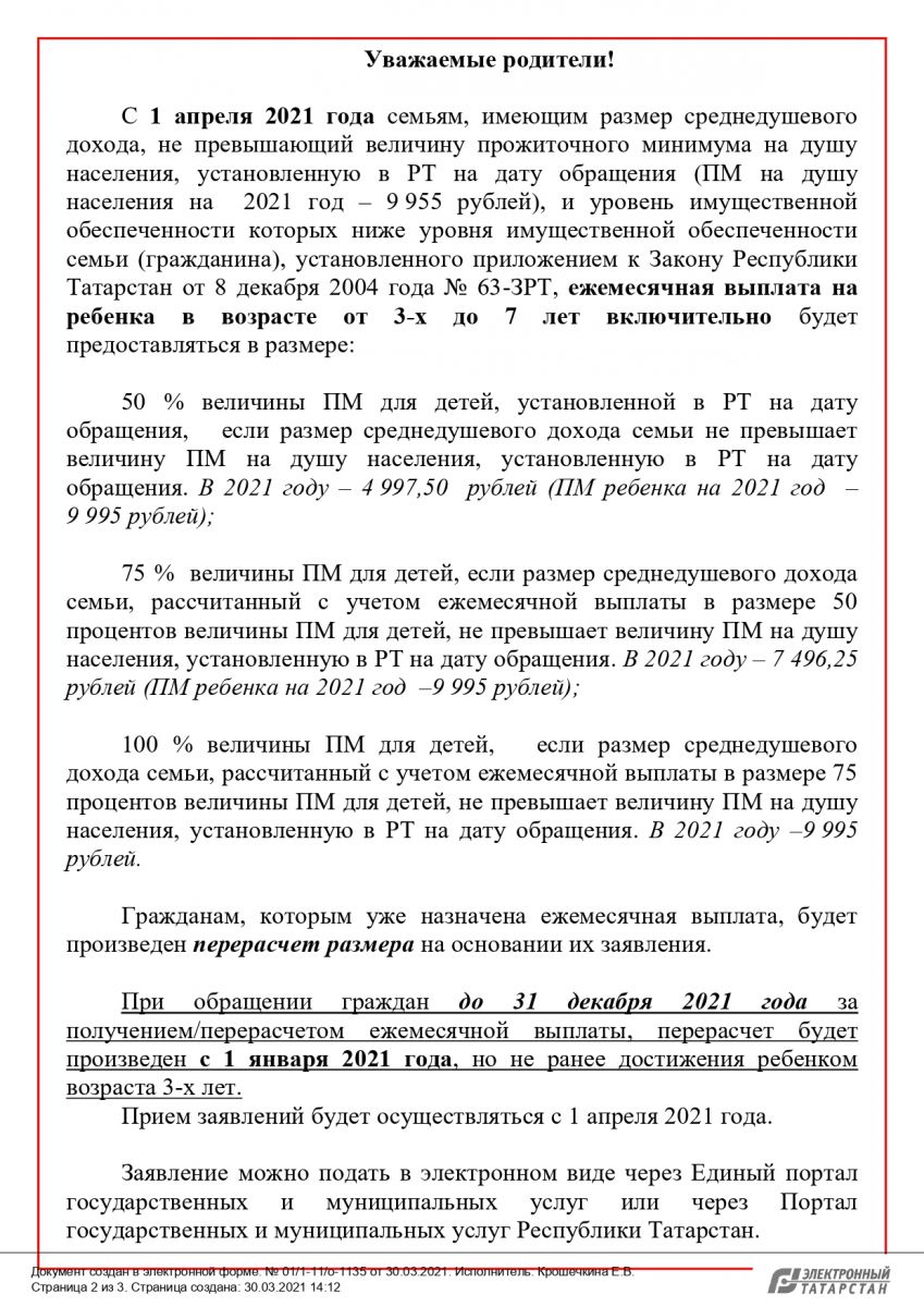 Информация о ежемесячных выплатах на ребенка в возрасте от 3-х до 7 лет включительно