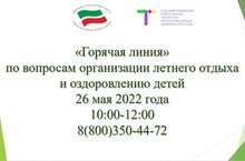 26 мая 2022 года в Общественной палате Республики Татарстан состоится «горячая линия» по вопросам организации летнего отдыха и оздоровления детей.