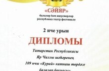 Поздравляем театральный коллектив "Яна караш" с победой в Республиканском конкурсе "Сайяр". Наши воспитанники группы №6 и №7 молодцы! БЛАГОДАРИМ за подготовку к конкурсу воспитателя по родному языку Сибгаеву Л. А, музыкального руководителя Амирову З. Х, воспитателей группы №7Шигапову Г. М, группы№6 Даутову Э. Ф,родителей воспитанников за помощь, за то, что всегда поддерживаете нас и всегда готовы к новым творческим проектам.