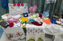 В нашем детском саду состоялась выставка "Бабушкин сундук". На выставке были представлены творения бабушек- рукодельниц наших воспитанников: текстильные изделия, украшенные различными видами вышивки, кружевом, расписные платки, вязаные шали, тряпичные и вязанные куколки, вышитые картины, калфаки, вязанные цветы.