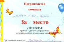 1 место в Спартакиаде среди дошкольников. Поздравляем!!!! 06.10.2019