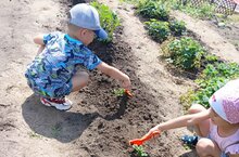 На огороде детского сада дети, совместно с воспитателем, посадили салат, свеклу, помидоры, огурцы, картофель и ухаживают за ними. В процессе наблюдений и посильного труда они узнают, что их рост и развитие зависят не только от солнечного света, тепла, влаги, почвы, но и от ухода. Педагоги учат детей поливу, рыхлению, прополке, объясняют, что они рыхлят для того, чтобы к корням растений лучше поступал воздух, учат отличать культурные растения от сорняков.