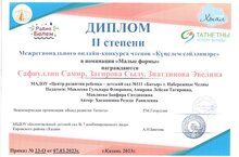 Недавно совместно с Фондом развития татнета «Билингвальный детский сад смешанного типа № 7» Кировского района г. Казани провел межрегиональный онлайн-конкурс чтецов «Күңелем сәйләннәре». Более 200 работ, поступивших на конкурс, были оценены членами жюри и подведены итоги конкурса. Воспитанники группы №15 Сафиуллин Самир, Загирова Сылу, Зиатдинова Эвелина стали победителями 2 степени в номинации "Малые формы". Поздравляем!!! Условием конкурса было: выразительно прочитать произведение на татарском языке, автором которого является педагог детского сада или родитель воспитанника. Хасаншина Резеда Равилевна, мама Айназ Хасаншина (15 гр.) специально для этого случая сочинила стихотворение "Туган тел". Выражаем ей огромную благодарность, желаем дальнейших творческих успехов!!!