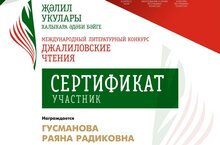 V Международный литературный конкурс «Джалиловские чтения» стартовал 15 октября 2022 года. Мероприятие реализуется Всемирным конгрессом татар совместно с Министерством культуры Республики Татарстан и Министерством образования и науки Республики Татарстан в рамках государственной программы Республики Татарстан «Сохранение национальной идентичости татарского народа 2020 – 2023 годы». До 15 ноября 2022 года было принято более 40 тысяч заявок участников. Заявки поступили из 38 регионов Российской Федерации и зарубежных стран: Азербайджан, Республика Беларусь, Болгария, Кыргызстан, Казахстан, Узбекистан. Участники читали стихотворения на 23 языках. Впервые за историю проведения конкурса были рассмотрены работы на чеченском, сербском и японском языках. По завершению II этапа конкурса в финал прошли 836 участника. Среди финалистов воспитанница 16 группы нашего детского сада - Гусманова Раяна. С чем мы ее от всей души поздравляем! 26 декабря текущего года решением жюри были определены победители конкурса. В следующем году будем ждать победу!