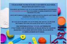 В НАШЕМ ДЕТСКОМ САДУ № 111 БАТЫР ОБЪЯВЛЯЕТСЯ ФЛЕШМОБ С 22.11.2022 ПО 13.12.2022 ПО СОЗДАНИЮ РАЗВИВАЮЩЕЙ ИГРУШКИ СВОИМИ РУКАМИ.