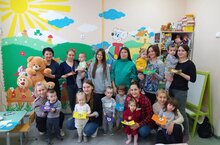 После творческого занятия консультант Кузнецова Екатерина Генадьевна всех пригласила на обучающее физкультурное занятие, где познакомила всех мам с разными приемами работы с мячами.
