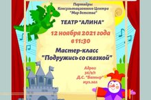 Ждём Вас вместе с детьми 12 ноября 2021 года в 11:30 на МАСТЕР-КЛАСС "Подружись со сказкой", который проведут партнёры нашего Консультационного центра ТЕАТР КУКОЛ "АЛИНА".