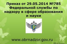Приказ Федеральной службы по надзору в сфере образования и науки от 29 мая 2014г. № 785 «Об утверждении требований к структуре официального сайта образовательной организации в информационно-телекоммуникационной сети «Интернет». -