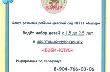 Уважаемые родители!Всех желающих приглашаем в адаптационную группу "Бэби-клуб" (дети с 1,5 до 2,5 лет) -