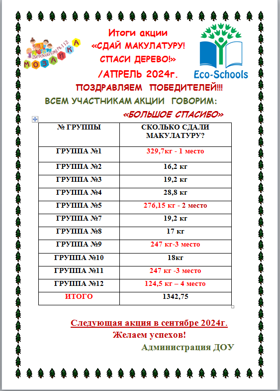 Опубликовано: 16.04.2024Результаты сбора макулатуры здесь