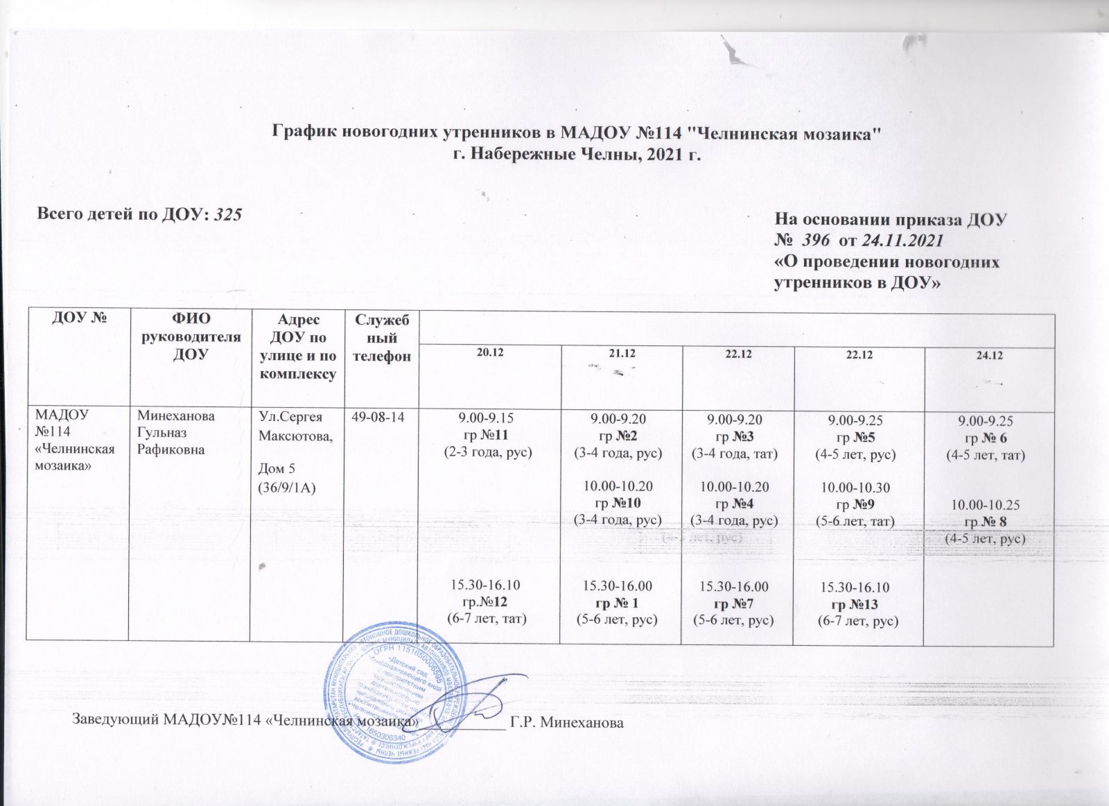 | Короткое название: | МАДОУ "Детский сад № 114 «Челнинская мозаика» |