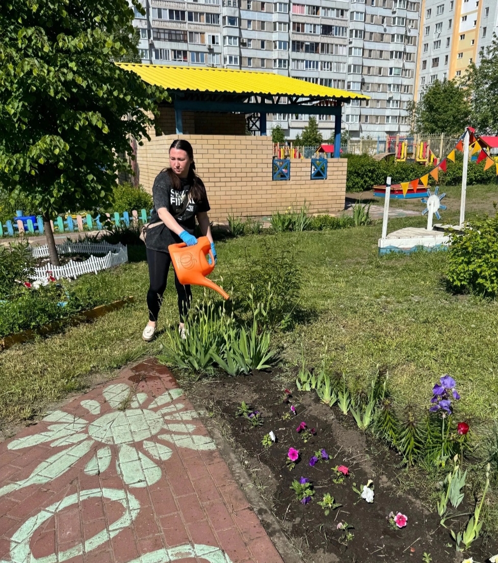 В благоустройстве участка группы 11 и посадки цветов помогали мамы.