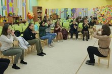 Сегодня в детском саду воспитатель по обучению детей татарскому языку Сафина .А.Ю. провела для педагогов мастер-класс по театральной деятельности -
