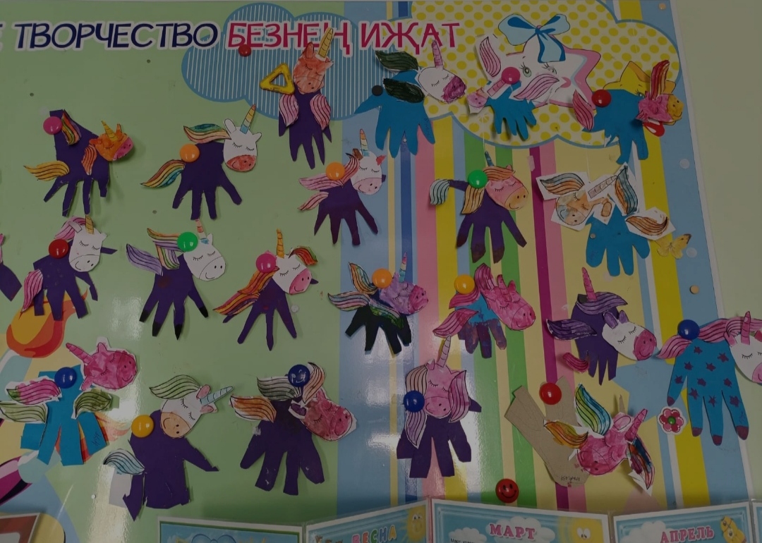 Единорог с помощью нетрадиционной техники рисования ( обведение ладошки)