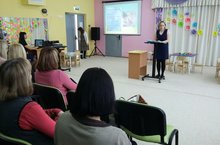 Сегодня в нашем саду состоялось КМО по теме "Здоровьесберегающие технологии в ДОУ". Перед инструкторами по физической культуры других садов выступали наш старший воспитатель Альбина Ильдаровна и наши воспитатели: Алина Ильгизовна наглядно показала несколько упражнений; Наталья Юрьевна провела интересный мастер-класс. А инструктор по плаванью Наталья Владимировна провела увлекательное, открытое занятие с детьми подготовительной к школе группой.