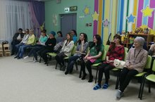 Сегодня в нашем детском саду прошло мероприятие под названием "Шаг за шагом" для молодых родителей неорганизованных детей и родителей детей вторых младших uрупп, посещяющих детский сад первый год. Цель данных мероприятий передача опыта, получение знаний по воспитанию и развитию детей от педагогов к родителям. В начале собрания педагог-психолог Юлия Александровна провела психологическую игру на сплочение коллектива. Так как основной темой сегодняшнего мероприятие стала "Организация питания". Старшая медсестра Миннероза Сабировна раскрыла вопросы о питании в ДОУ. После воспитатели по обучению татарскому языку Алина Юнусовна и Лилия Николаевна провели элементы игр с родителями. Рассказали о занятиях по обучению татарскому языку с детьми. В заключении мероприятия мы провели дегустацию. Родители смогли попробовать некоторые из блюд в нашем детском саду.