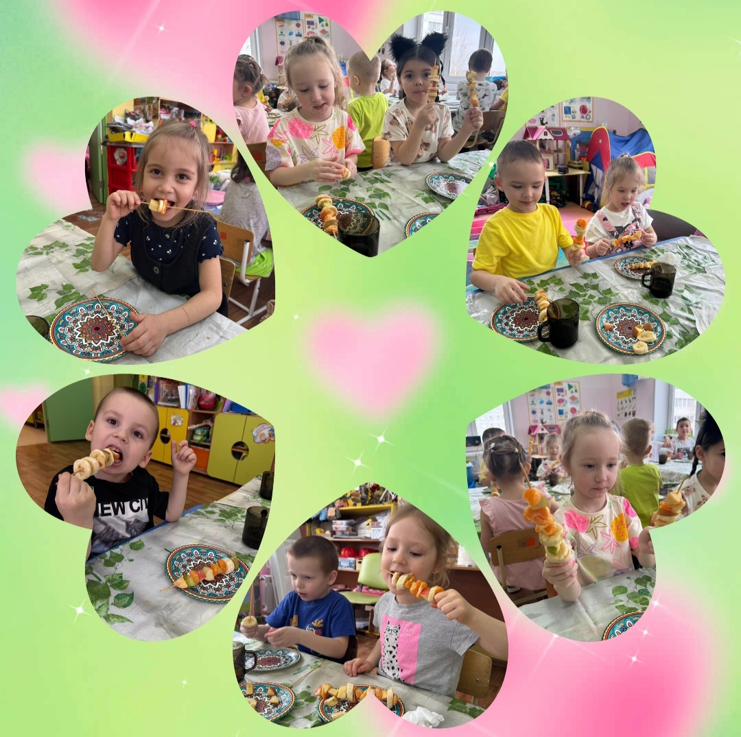 Воспитанники группы 9 готовили полезное и яркое лакомство. Для шашлычка им понадобились:
