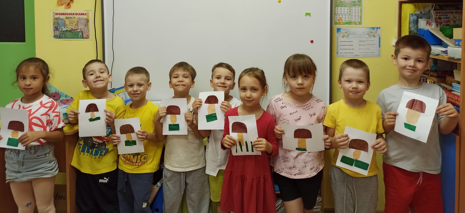 Осень — это самое урожайное время для грибов. Именно в этот период в наших лесах обильно растут самые ценные и вкусные породы: маслята, подберезовики, подосиновики, вешенки, сморчки, опята, лисички, моховики, грузди, рыжики и, конечно, самые ценные белые грибы. Об этом хорошо знают воспитанники группы 12, во время беседы на грибную тематику они поделились своим опытом сбора грибов, поиграли в дидактические игры "Съедобные и несъедобные грибы", " Из чего состоит гриб? " В завершение беседы ребята прослушали сказку "Война грибов и ягод", а затем выполнили объемную аппликацию "Гриб боровик".