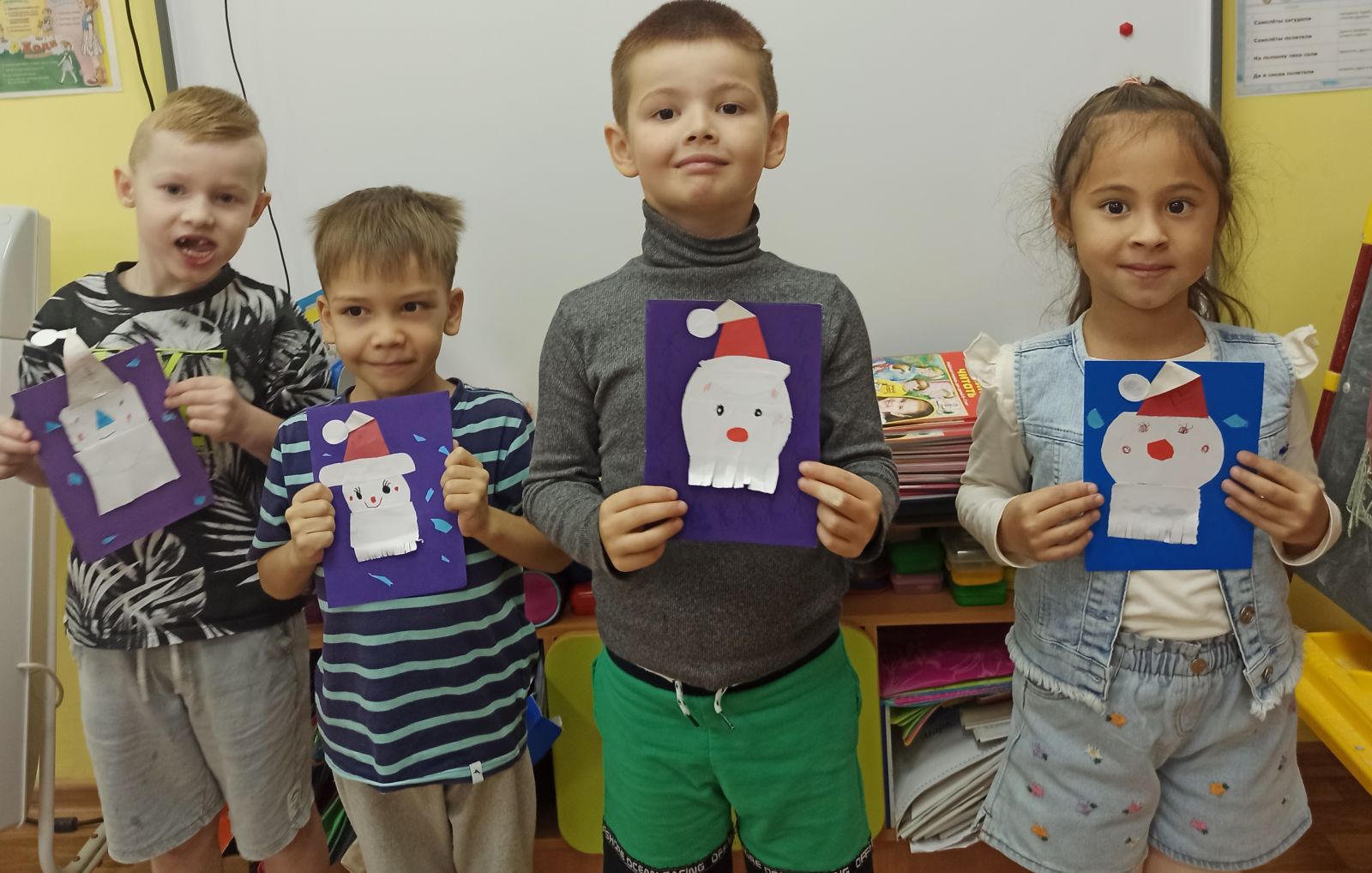 И зовётся - Красный Нос.Именно с таких слов сегодня началось занятие по аппликации в 12 группе, посвященное 18 ноября - дню рождения Дедушки Мороза. С целью расширить представления детей о главном волшебнике страны - Дедушке Морозе, а также развить мелкую моторику рук, фантазию и воображение, умение детей работать с клеем и ватой, воспитать аккуратность сначала с детьми была проведена беседа о том, кто такой Дед Мороз, сколько ему лет, чем занимается Дедушка Мороз. Ребята пришли к выводу, что Дед Мороз тоже каждый год отмечает день рождение, и тоже приглашает к себе гостей, и тоже ждет подарки. Поэтому и было принято решение в качестве подарка изготовить для Дорого Дедушки Мороза подарок - открытку "Борода Деда Мороза". И тут уж дети постарались на славу, ведь каждому ребенку хотелось порадовать Дедушку Мороза.