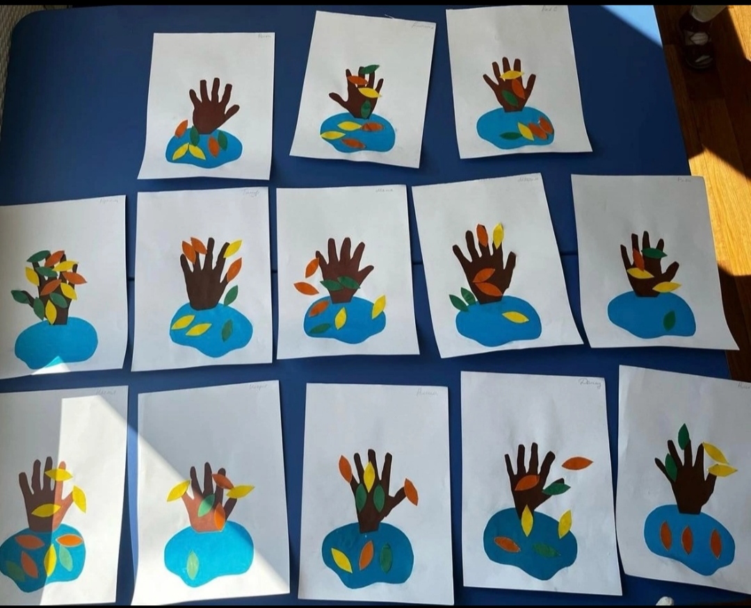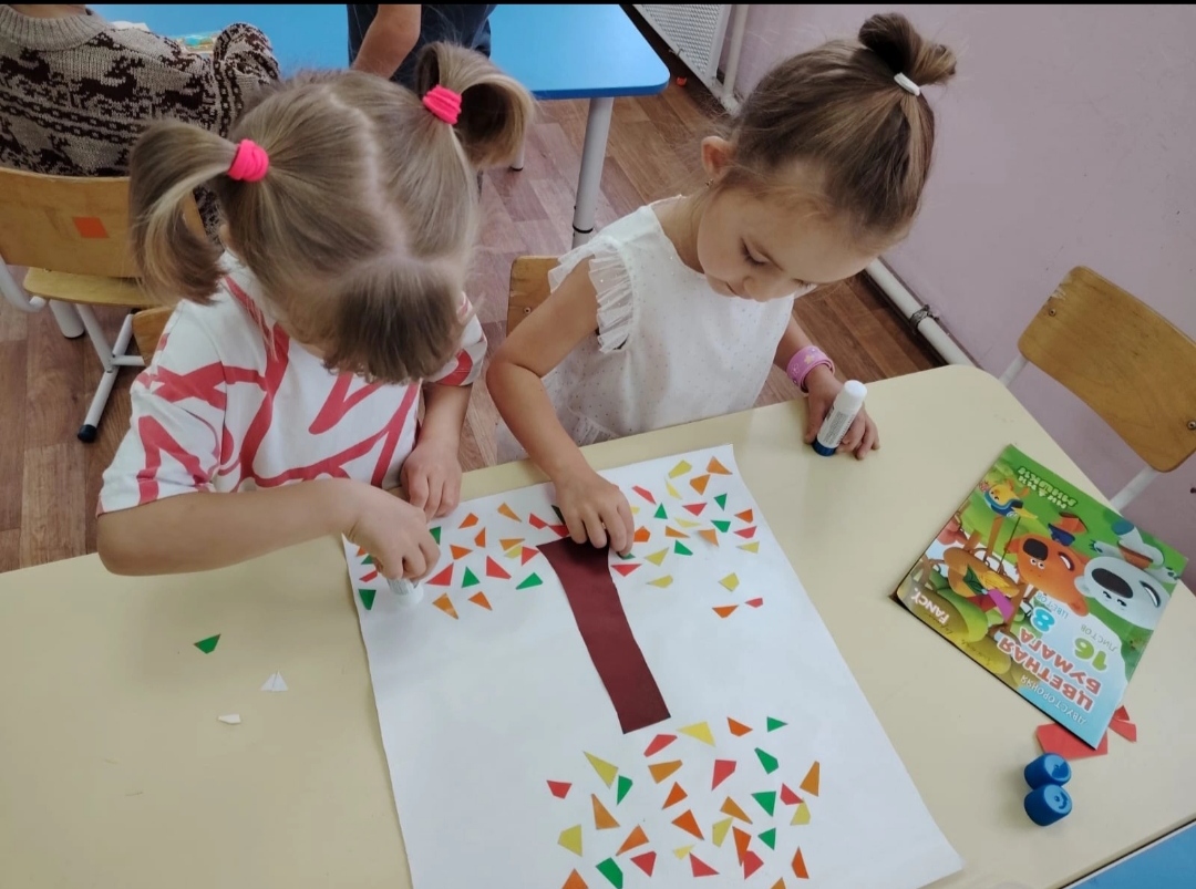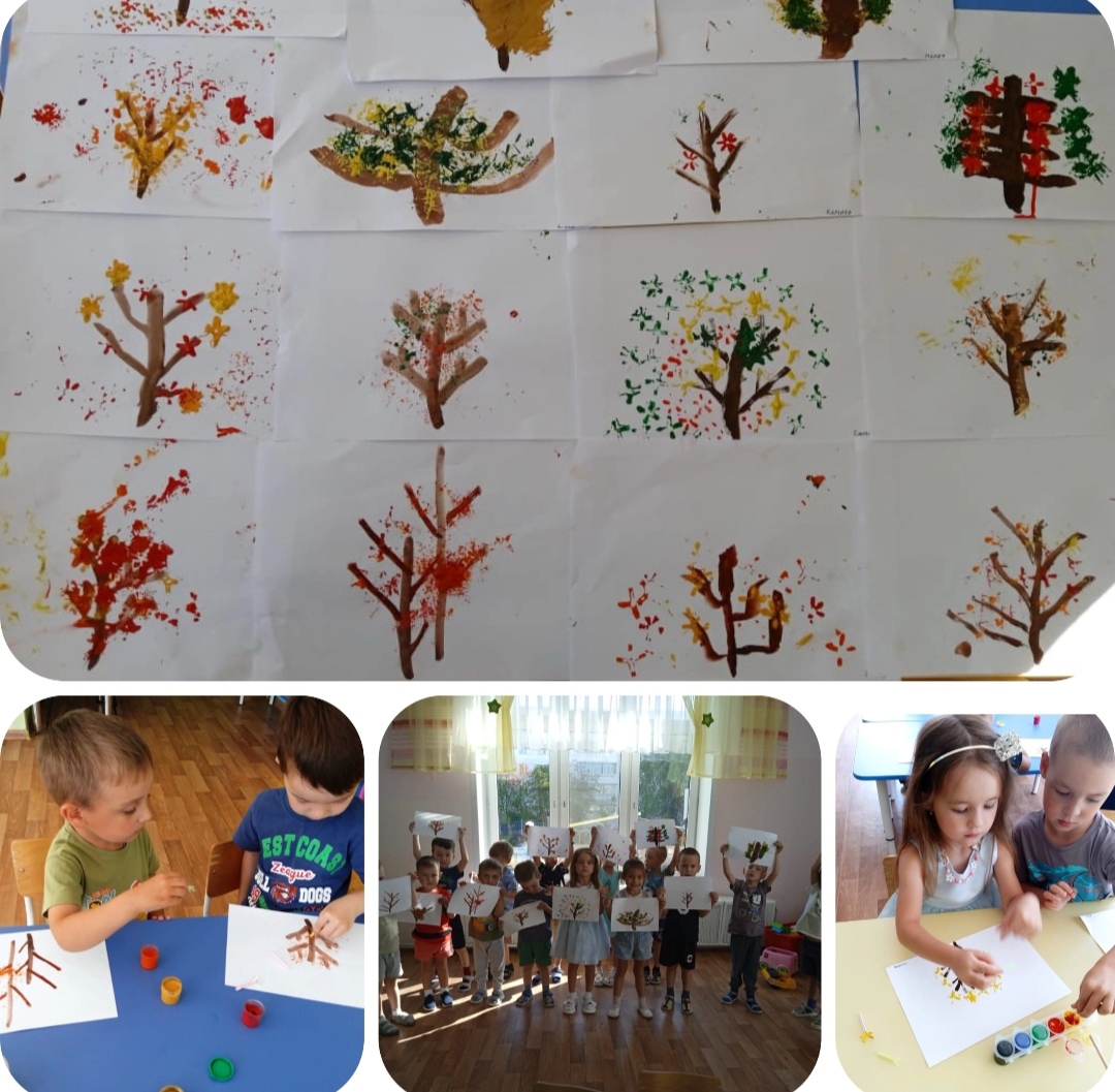 Воспитанники средней группы 10 под руководством воспитателя Александры Петровны рисовали осеннее дерево.