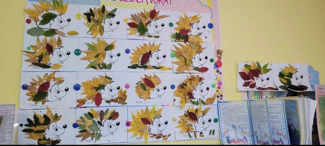 Воспитанники группы 12 под руководством воспитателя Гульнур Асгатовны решили использовать осенние листья в аппликации «Ёжик».