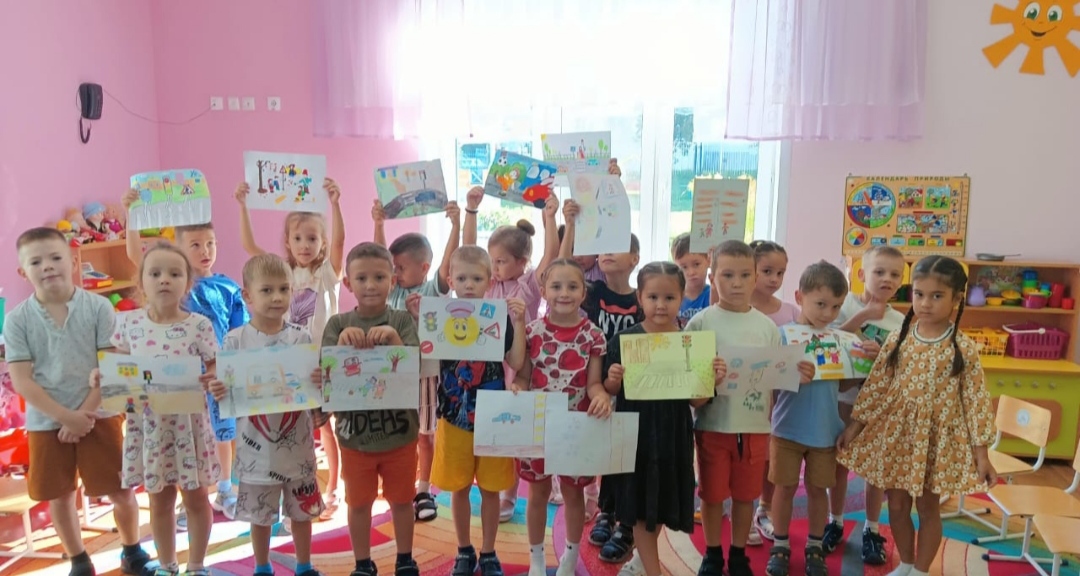 Воспитанники рисовали рисунки, а потом рассказывали, что изображено или кто изображен, какое правило дорожного движения нужно соблюдать и почему.