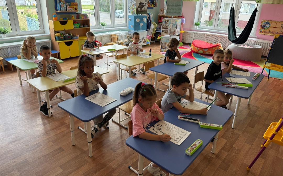 В детском саду педагог- психолог Юлия Александровна проводит диагностику готовности детей подготовительных групп к школе.