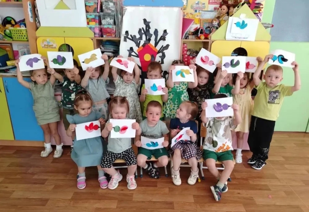 В рамках конкурса "Эковесна-2026" воспитатель группы № 2 Александра Петровна провела с детьми аппликацию: "Птички прилетели". Цель: воспитание интереса к птицам, заботливого отношения к ним.
