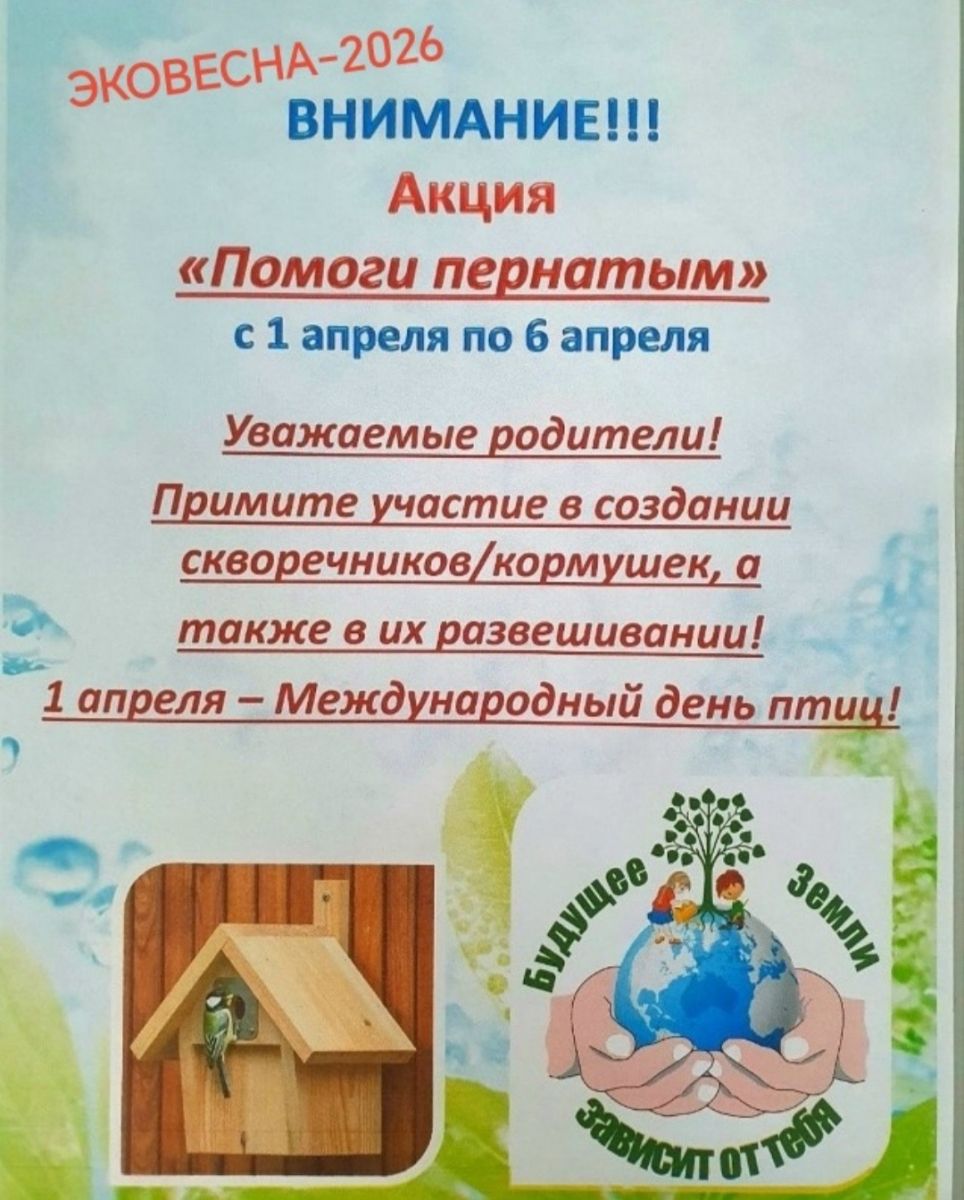 1 неделя: "Помоги пернатым" с 1 по 5 апреля.
