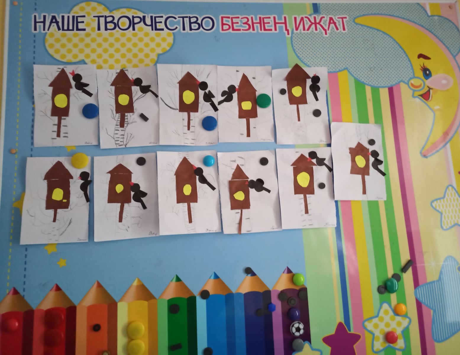 P. S. Фотода 8нче санлы мәктәпкә әзерлек төркеме балалары ясаган сыерчык оялары.
