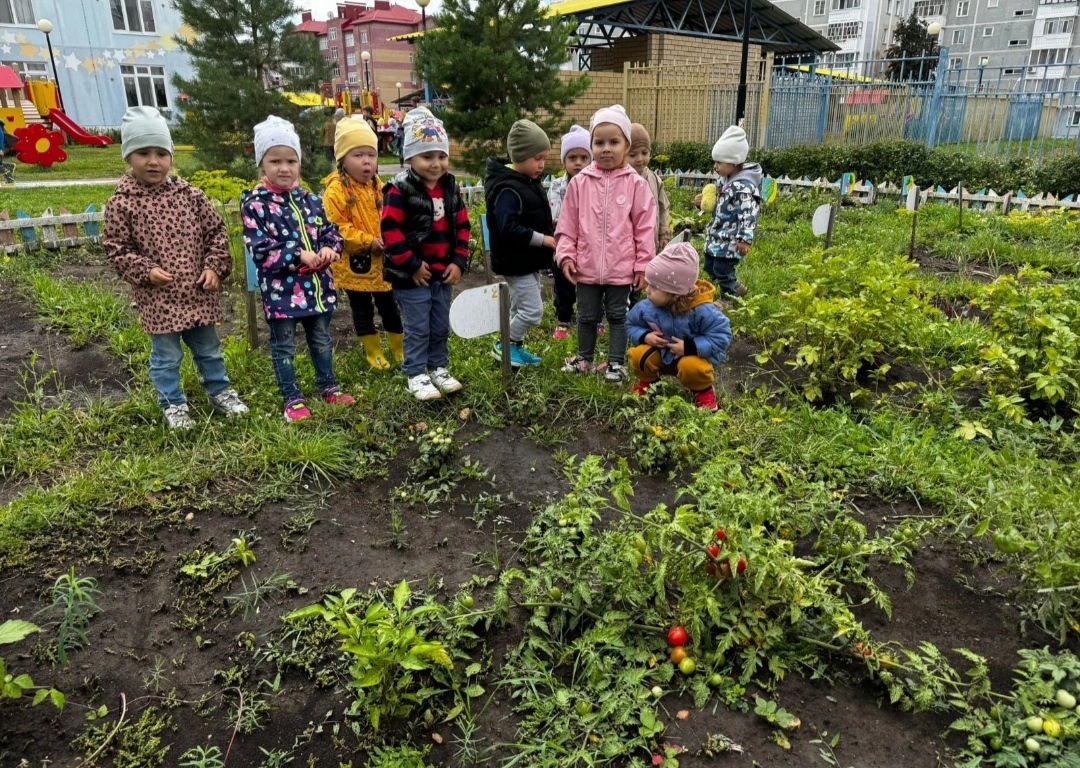 Воспитанники группы 13 вместе с педагогом Юлией Александровной все лето ухаживали за своей грядкой, теперь собирают урожай.