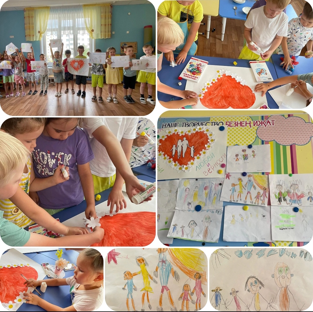 Очень интересное занятие прошло с воспитанниками группы 12 под руководством педагога Елены Петровны, которое увлекло детей – это изготовление символа праздника – ромашки. Дети очень старались и все ромашки разместили вокруг сердца "Мы и ромашки". Дети решили, что ромашка волшебная и будет исполнять желания в их дружной семье. И каждый ребенок нарисовал свою семью????.