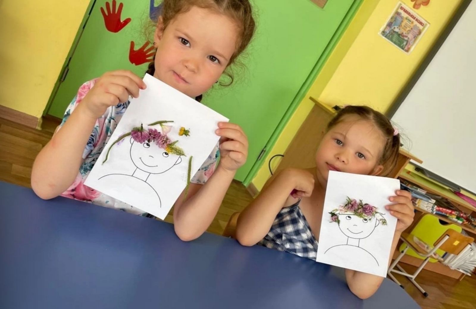 Воспитанники группы 12 под руководством педагога Елены Петровны собрали на прогулке природный материал(цветочки, листочки) и сделали аппликацию «Летний парикмахер». Цель занятия вызвать интерес к аппликации из природных материалов; развивать воображение, фантазию.