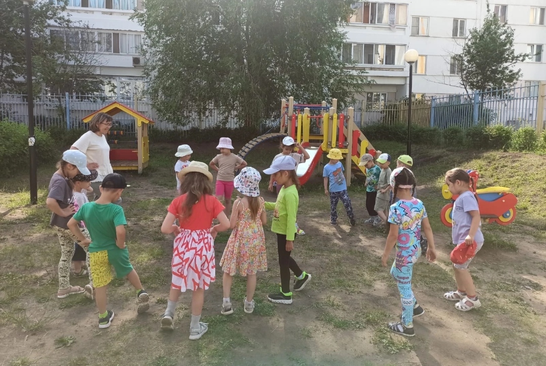 В теплый период, педагоги с детьми выполняют зарядку на улице, а значит – закаляются, укрепляют здоровье и идут в ногу со временем. Дети любят танцевать и с большим удовольствием выполняют музыкально-ритмические движения под ритмы современных детских песен.