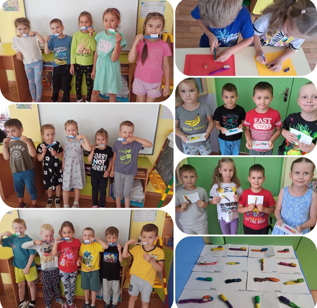 Воспитанники группы 12 сделали аппликацию «Зубная щётка», воспитанники группы 3 слепили зубную щетку, раскрасили раскраски, поиграли в сюжетно-ролевую игру «У стоматолога», дети повторили правила личной гигиены, приемы ухода за зубами.