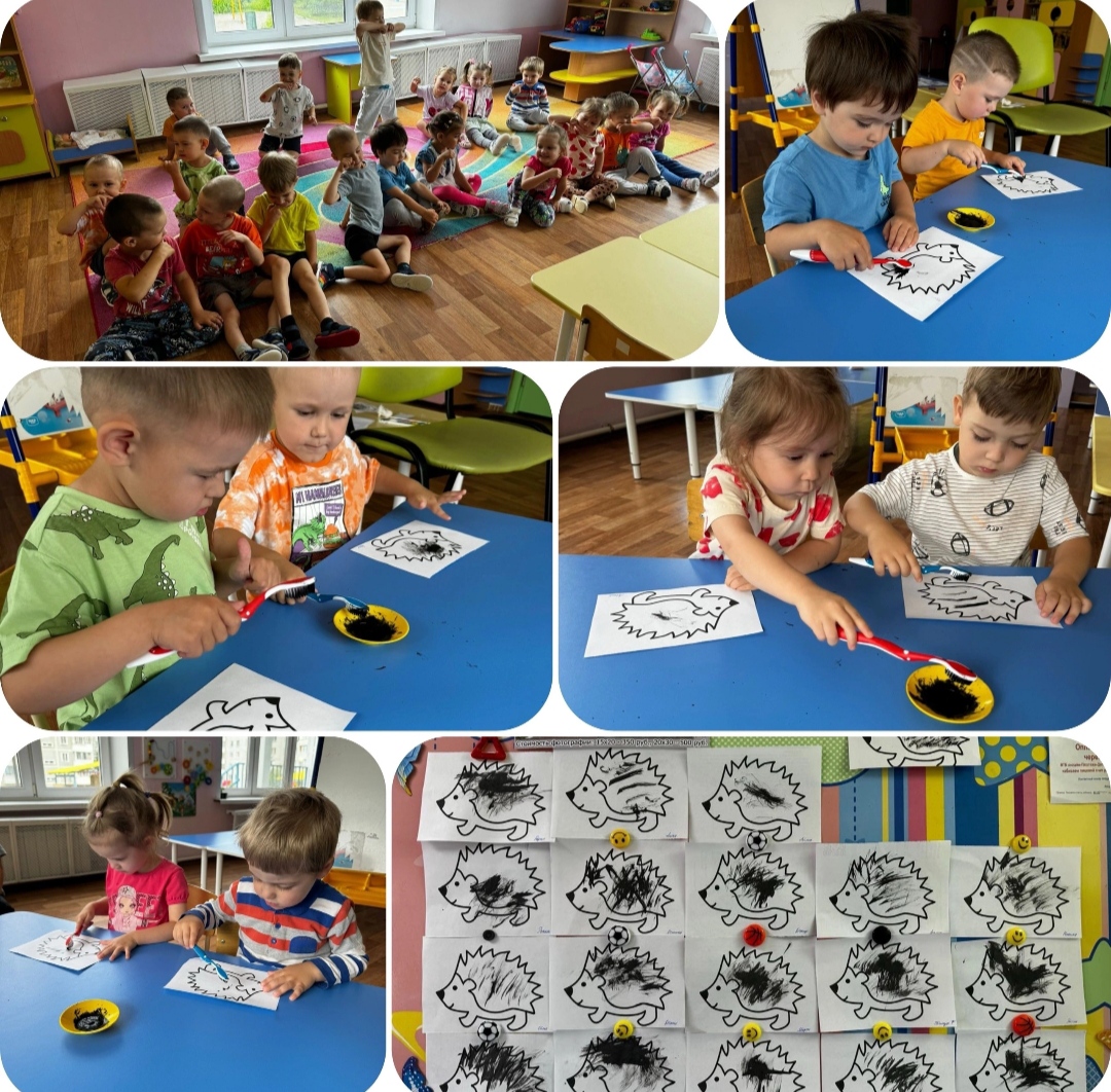 В «День рождения зубной щетки» с малышами 13 группы была проведена беседа о том, для чего человеку нужна зубная щётка, а так же закрепили правила чистки зубов. Затем дети рисовали ежика, используя нетрадиционную технику, с помощью старой щетки. С помощью зубной щетки можно создать множество красивых рисунков. -
