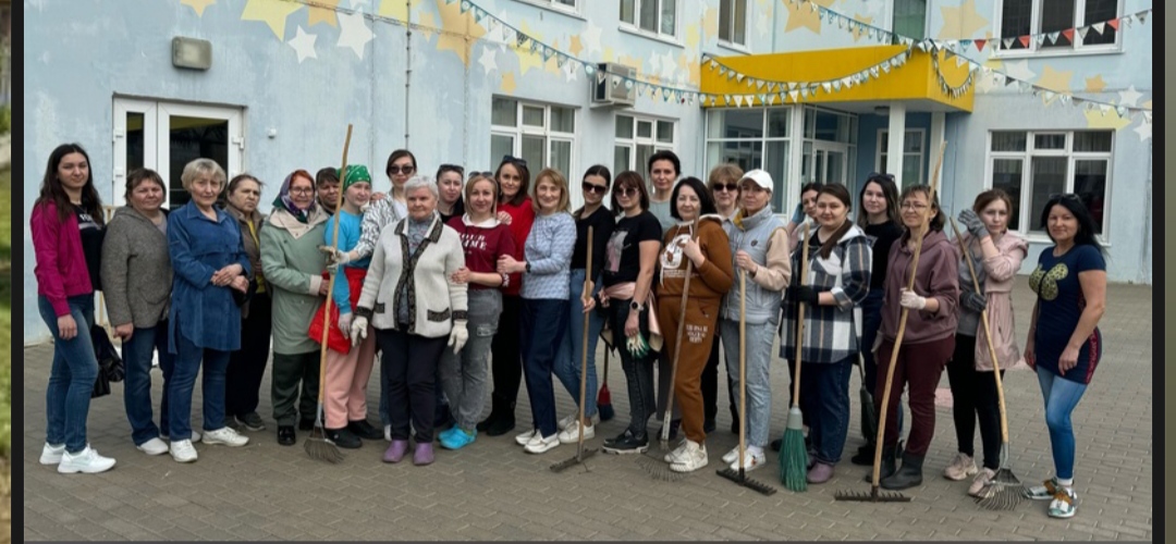 Коллектив детского сада принимает активное участие в экологическом двухмесячнике на территории ДОУ. Все дружно взялись за грабли, лопаты…