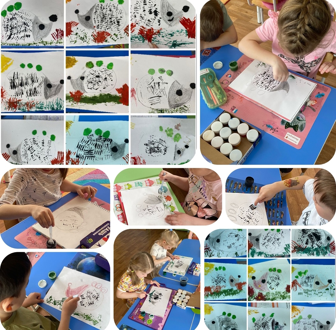 Воспитанники группы 7 под руководством молодого педагога Алины Рамилевны рисовали ежика нетрадиционным способом, с помощью одноразовых вилок. Ежик получился очень даже хорошенький