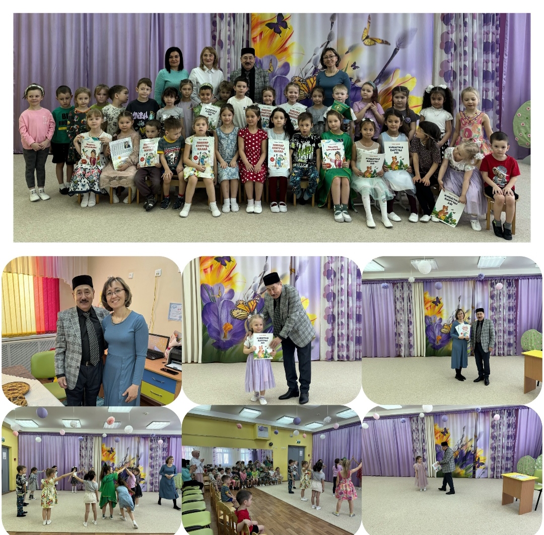 Сегодня наш детский сад 115 "Звездочки" встретил дорогого гостя - лауреата многочисленных государственных премий имени Гаяза Исхаки, Абдуллы Алиша, Габдуллы Тукая, кандидата филологических наук, члена Союза писателей РТ, руководителя Набережночелнинского отделения Союза писателей, всеми любимого и уважаемого журналиста, писателя, поэта-прозаика Факиля Миннемухамметовича Сафина. Воспитанники нашего сада с большой ответственностью и огромным энтузиазмом готовились к этой встрече с известным поэтом: выучили стихи, а также подготовили татарские национальные игры "Капкалы" и "Түбәтәй", которые потом дети продемонстрировали Факилю Миннемухамметовичу. Весь коллектив детского сада достойно встретили дорогого гостя. Воспитанники средней, старшей и подготовительной групп (воспитатели Галимова Г.И., Сафина А. Ю., Фасхутдинова Э И., Султанова А.А) сумели продемонстрировать хорошие знания и созданный в саду татарский национальный колорит. Факил абый с восхищением наблюдал выступления детей. В завершение встречи сделали совместное фото на память. Воспоминания от этой встречи с писателем надолго сохранятся в сердцах юных воспитанников.