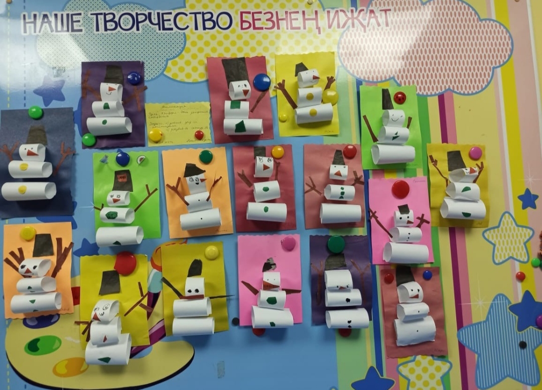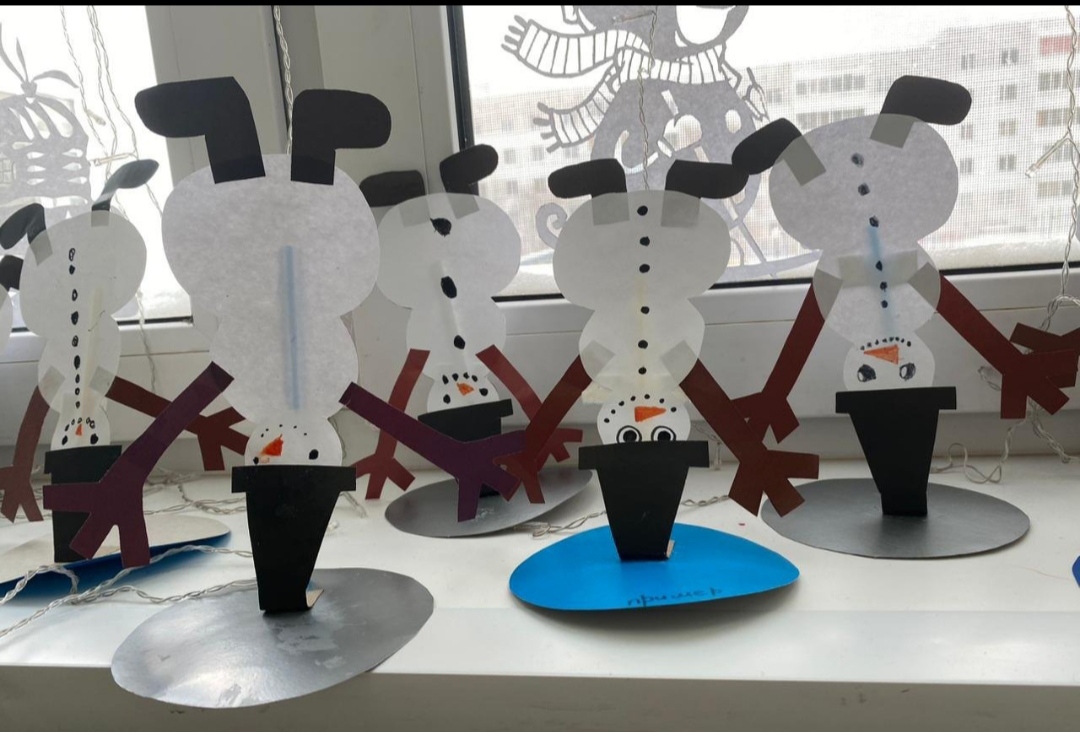Сегодня воспитанники группы 4 под руководством молодого педагога Алины Рамилевны изготовили поделку на тему «Снеговик-акробат». -