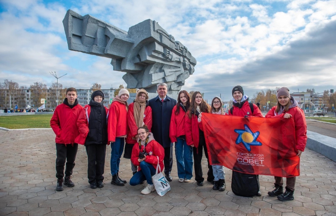 Мэр города Наиль Магдеев, депутаты Государственного Совета, Городского Совета, студенты, председатели ТОС сегодня возложили цветы к Вечному огню.