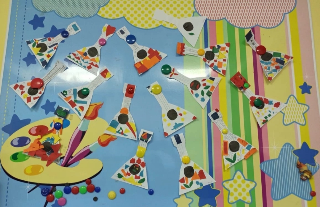 Очень продуктивно прошло занятие по аппликации в группе 12. Дети под руководством воспитателя Алины Юнусовны изготовили музыкальный инструмент- Балалайка. Целью занятия было расширение представлений детей о музыкальных инструментах через выполнение аппликации из бумаги.