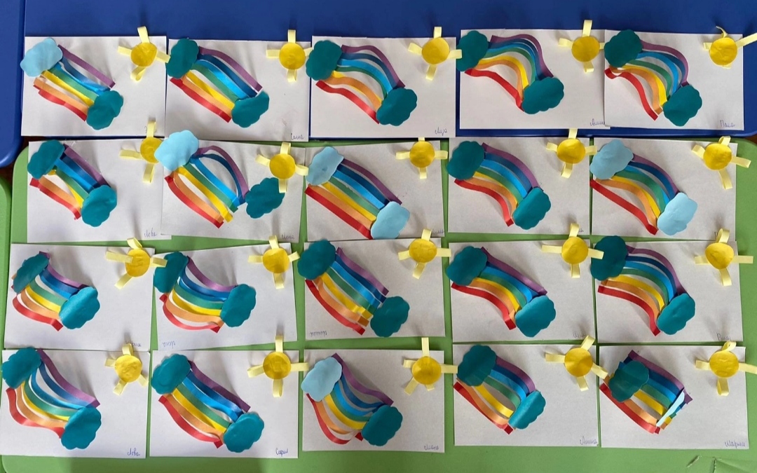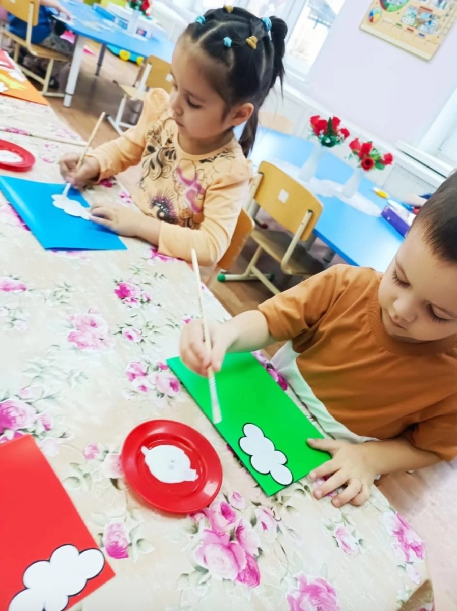 Воспитанники группы 7 под руководством молодого педагога Алины Рамилевны делали аппликацию "Радуга" -