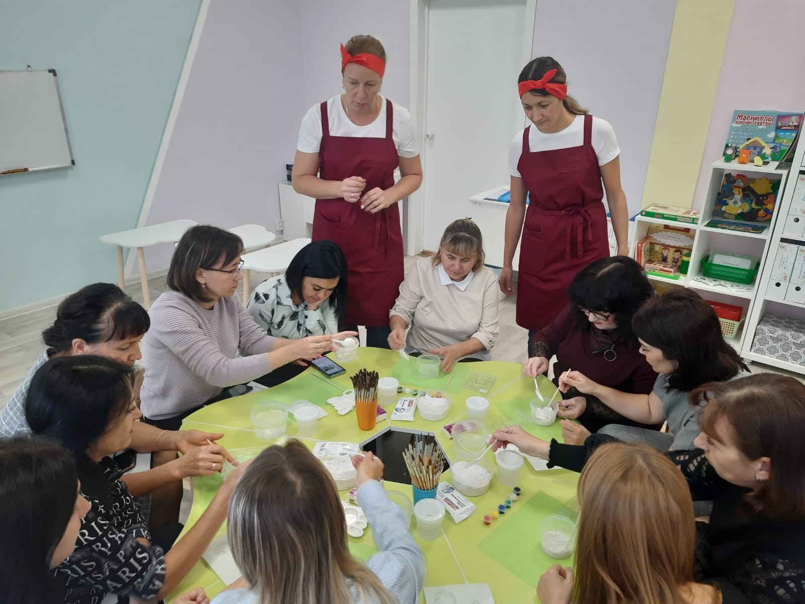 Педагоги нашего ДОУ приняли участие в региональном семинаре для педагогов дошкольных образовательных организаций "Творчество, талант, успех каждого ребенка", который состоялся в г. Нижнекамск МБДОУ "Центр развития ребекка - детский Сад √82". В данном мероприятии, организованном Управлением дошкольного образование исполнительного комитета Нижнекамского муниципального района для содействия пропаганде педагогических инициатив педагогов ДОУ, а также с целью обмена опытом по использованию современных педагогических технологий в работе с детьми, приняло участие более 70 педагогов из Нижнекамска, Камских Полян, Елабуги и Набережных Челнов. Была проведена обзорная экскурсия по саду, а также организована выставка поделок, игр, дидактических пособий педагогов ДОУ. Гости семинара приняли участие в увлекательных мастер-классах "Техника кинусайдинга", "Юный мыловар", "Барельефы из гипса". В ходе семинара педагоги познакомились с технологиями по художественно-эстетическому развитию детей дошкольного возраста. Особый интерес вызвали новые презентации опыта работы с детьми, современные представления авторских проектов. Семинар прошел продуктивно и результативно в деловой атмосфере. По материалам семинара был создан сборник в помощь педагогам для использования в работе.