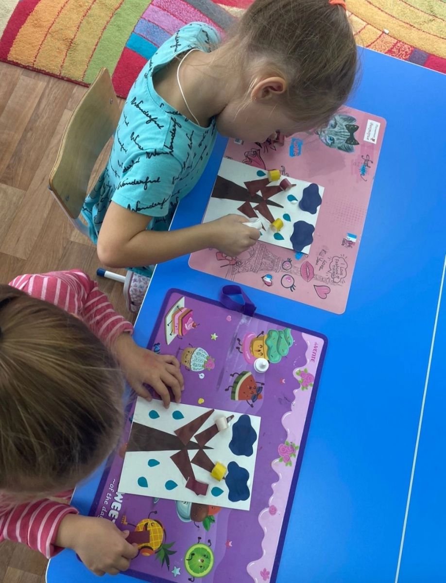 Сегодня воспитанники группы 7 под руководством молодого педагога Алины Рамилевны изготовили картину «Осеннее дерево в дождливый день». Картина получилась очень сказочная и красивая. Дети были довольны своим творчеством.