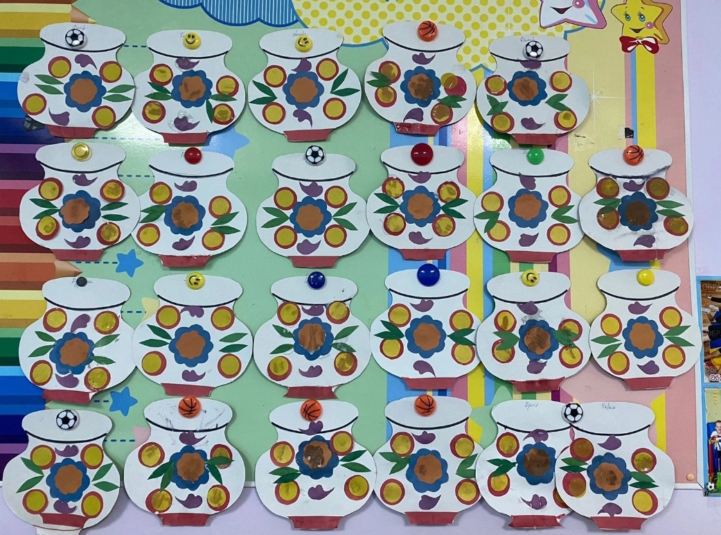 Воспитанники группы 4, под руководством молодого педагога Алины Рамилевны, украшали вазу - выкладывали орнамент из цветов. -