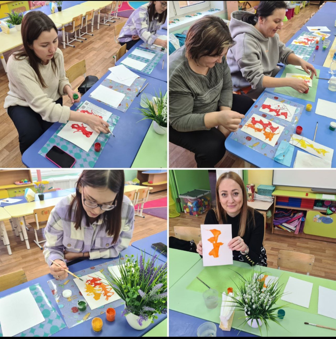 Сегодня для родителей 4 группы воспитатель Алина Эдуардовна провела мастер класс по ниткографии.