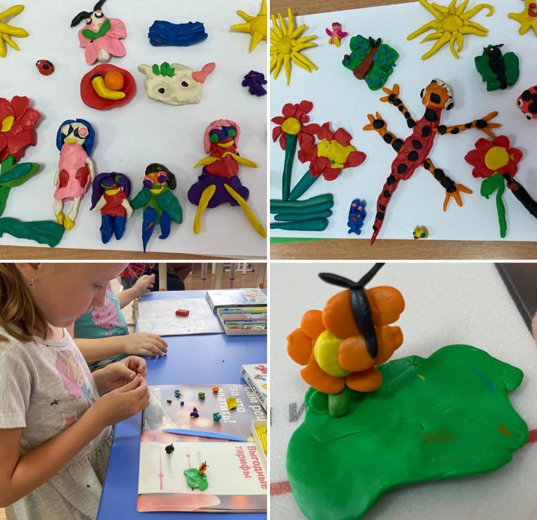 Сегодня воспитанники группы 1 под руководством воспитателя Ильмиры Рамзилевны лепили из пластилина на тему"Лето" и затем составляли красивую картину.